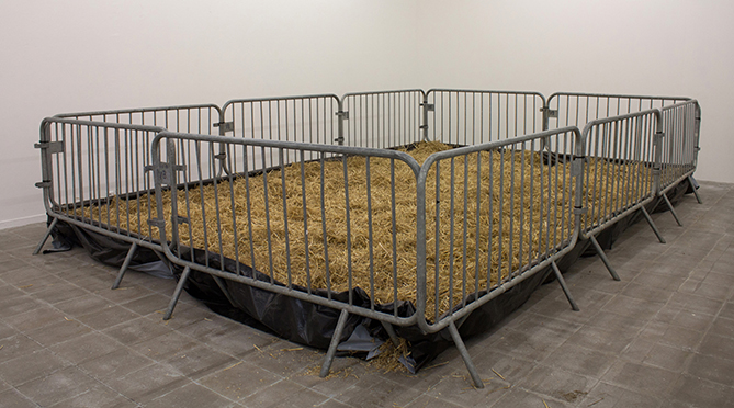 Un espace qui s’est restreint au vu de l’installation mise en place lors de cet évènement: l’accueil de génisses dans une galerie d’art, la présence d’un cochon grillé sur un barbecue conçu comme un objet d’art, le nom même de « foire » génèrent une douce confusion.