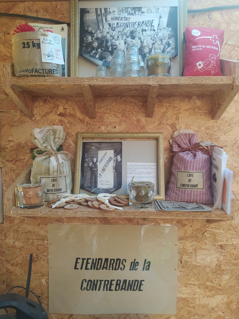 A force de rencontres, les participants et les partenaires publics et privés ont souhaité développer la contrebande et une véritable entreprise s’est mise en place ainsi qu’une philosophie de vie sur tout le territoire. Une monnaie de contrebande a été frappée, un journal «le p’tit contrebandier» a été publié durant toute la durée de la résidence-mission, des verres estampillés contrebande ont été créés par l’écomusée du verre puis des produits locaux (savons, chocolats, bières) ont été saisis par les contrebandiers et échanger dans un esprit d’économie circulaire. Ainsi au-delà des échanges matériels ce sont bien les habitants qui se sont trouvés touchés voire impliqués d’une manière ou d’une autre dans ce geste artistique.